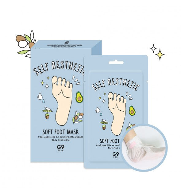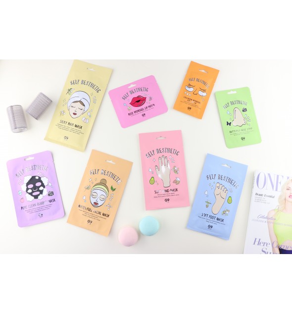 Moisturising sock-shaped mask repairs dry skin and cracked heels from a single use! G9 Complex contains a blend of moisturising extracts from lotus, ivy, pine needle, eucalyptus, oregano leaf, chlorella, hibiscus petal, chia seed, and green tea. For an ultimate self-care, try G9 Skin Self Aesthetic Magazine pack of 8 masks.